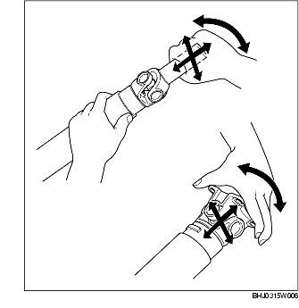 2. Inspecter le jeu et le mouvement rotatif du joint en faisant tourner le joint universel dans les sens indiqués par les flèches.