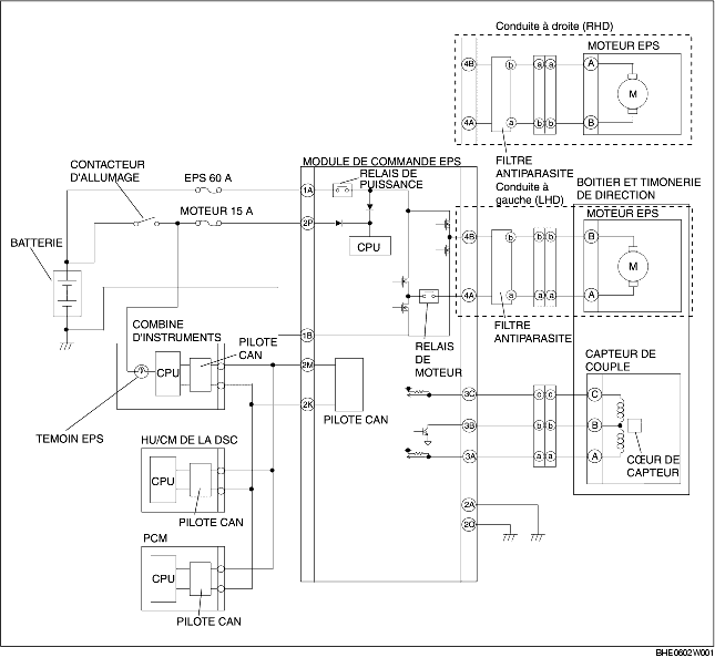 SCHEMA DE CABLAGE DU SYSTEME DE SERVODIRECTION ELECTRIQUE (EPS)