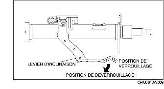 (1) Vérifier que le levier d'inclinaison se déplace librement de la position bloquée à la position débloquée.