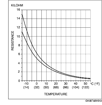 • Si les caractéristiques de la sonde ne correspondent pas à celles définies dans le graphique, remplacer la sonde de température ambiante.