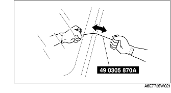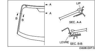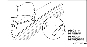 • Pour les endroits où l'enduit d'étanchéité est difficile à couper, utiliser l'outil SST (corde piano), et suivre la procédure décrite sous 'En cas de réutilisation du pare-brise'.