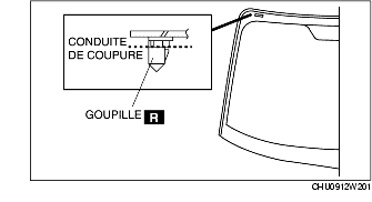 1. Pratiquer un orifice dans le produit d'étanchéité, depuis l'intérieur du véhicule à l'aide d'un poinçon, en évitant les goupilles.