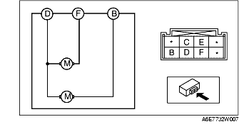 1. Appliquer la tension positive de la batterie aux bornes du rétroviseur extérieur électrique, et vérifier le fonctionnement du rétroviseur extérieur électrique.