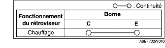 2. Vérifier la continuité entre les bornes du dispositif de chauffage du rétroviseur extérieur électrique.