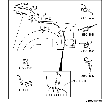 4. Tirer le flexible de purge arrière vers l'intérieur du véhicule, et déposer le flexible.