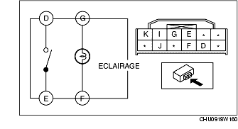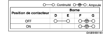 4. Vérifier que la continuité entre les bornes du contacteur de feu de signal de détresse correspond aux valeurs indiquées dans le tableau.