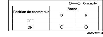 4. Contrôler que la continuité entre les bornes du contacteur général d'éclairage correspond aux valeurs indiquées dans le tableau.