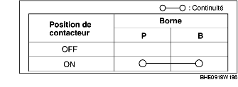 • Si les valeurs mesurées ne correspondent pas aux spécifications du tableau, remplacer le contacteur général d'éclairage.