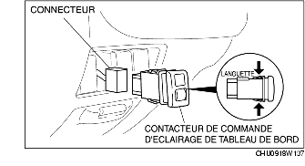 2. Déposer le contacteur de commande d'éclairage du panneau. (voir la section Note sur la dépose de contacteur de commande d'éclairage de panneau.)
