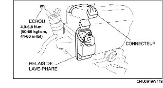3. Déposer les écrous, puis retirer le relais de lave-phare.