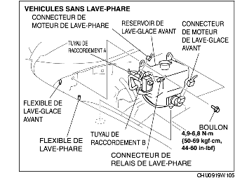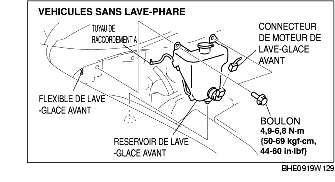 3. Débrancher le connecteur du moteur de lave-phare. (véhicules avec lave-phare)