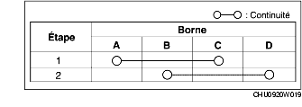 1. Vérifier que la continuité correspond aux valeurs indiquées dans le tableau.