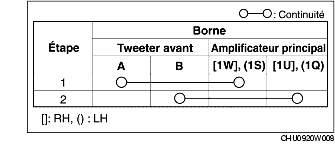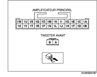 3. Vérifier que la continuité entre le tweeter avant et l'amplificateur principal correspond aux spécifications du tableau.